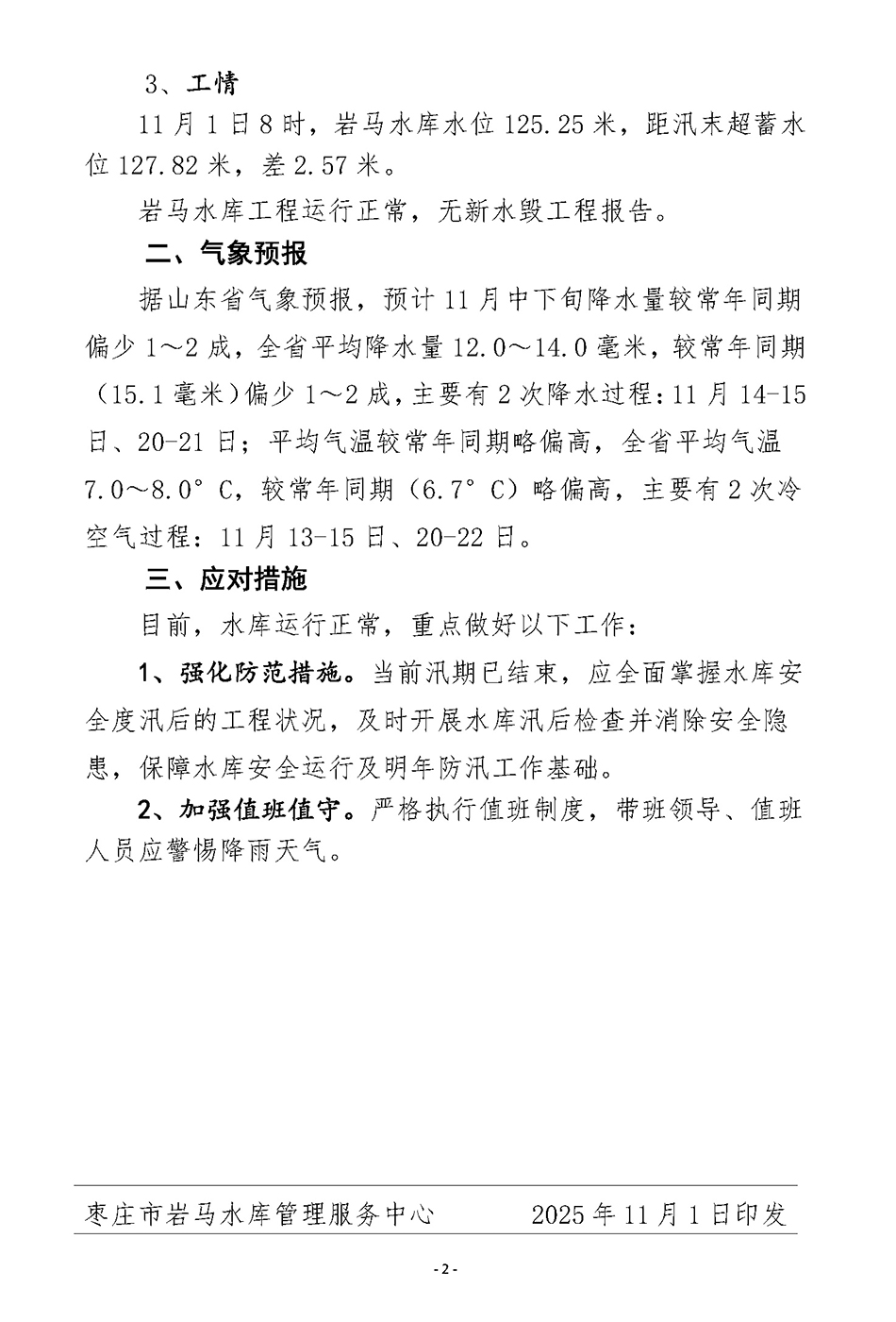 > 岩马水库水旱灾害防御信息(2025年第11期)
