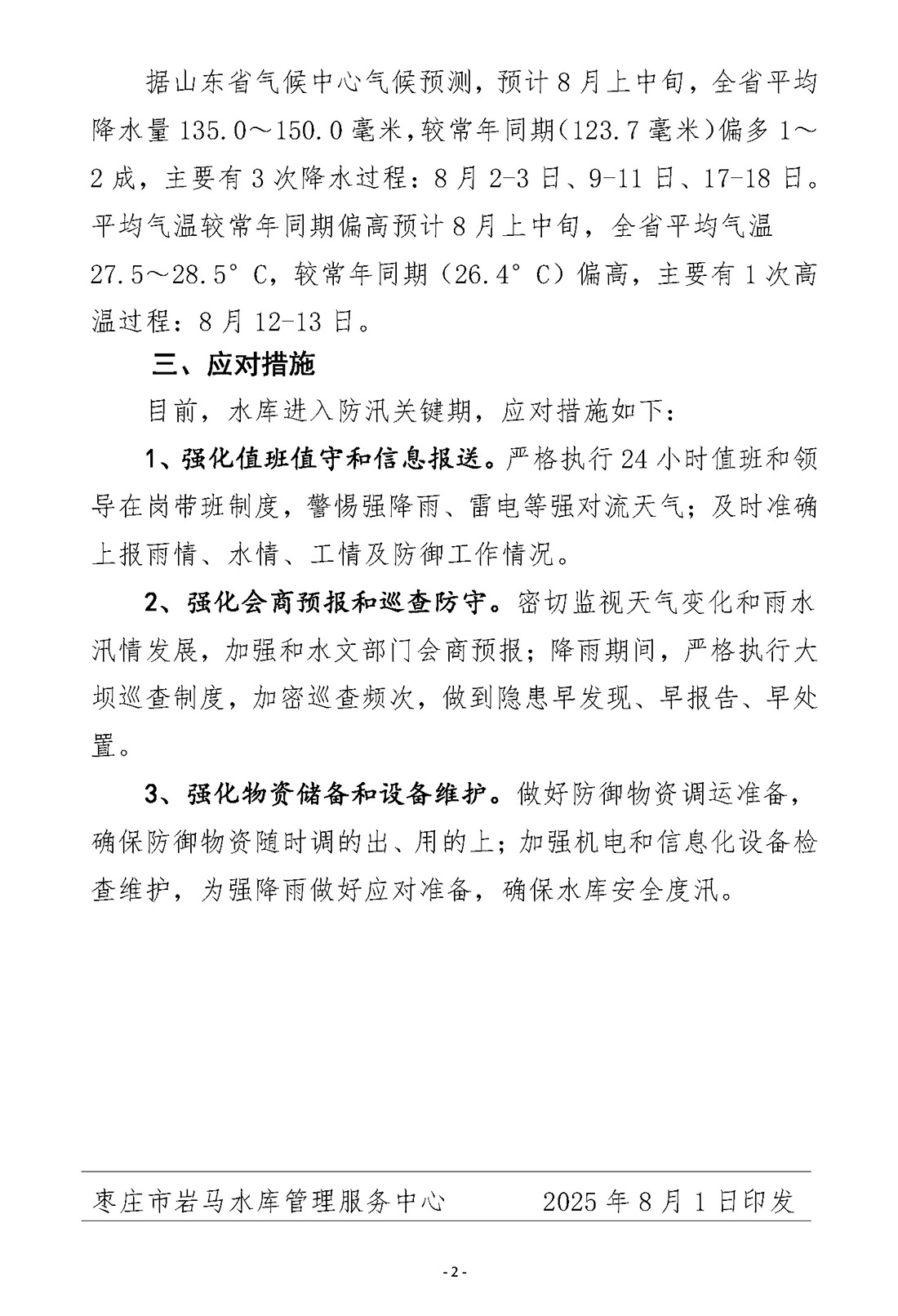 > 岩马水库水旱灾害防御信息(2025年第8期)
