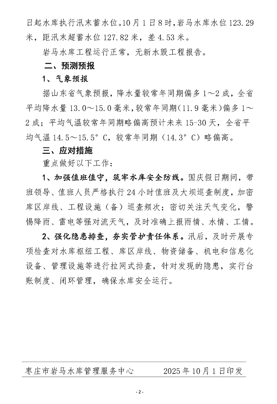 > 岩马水库水旱灾害防御信息(2025年第10期)