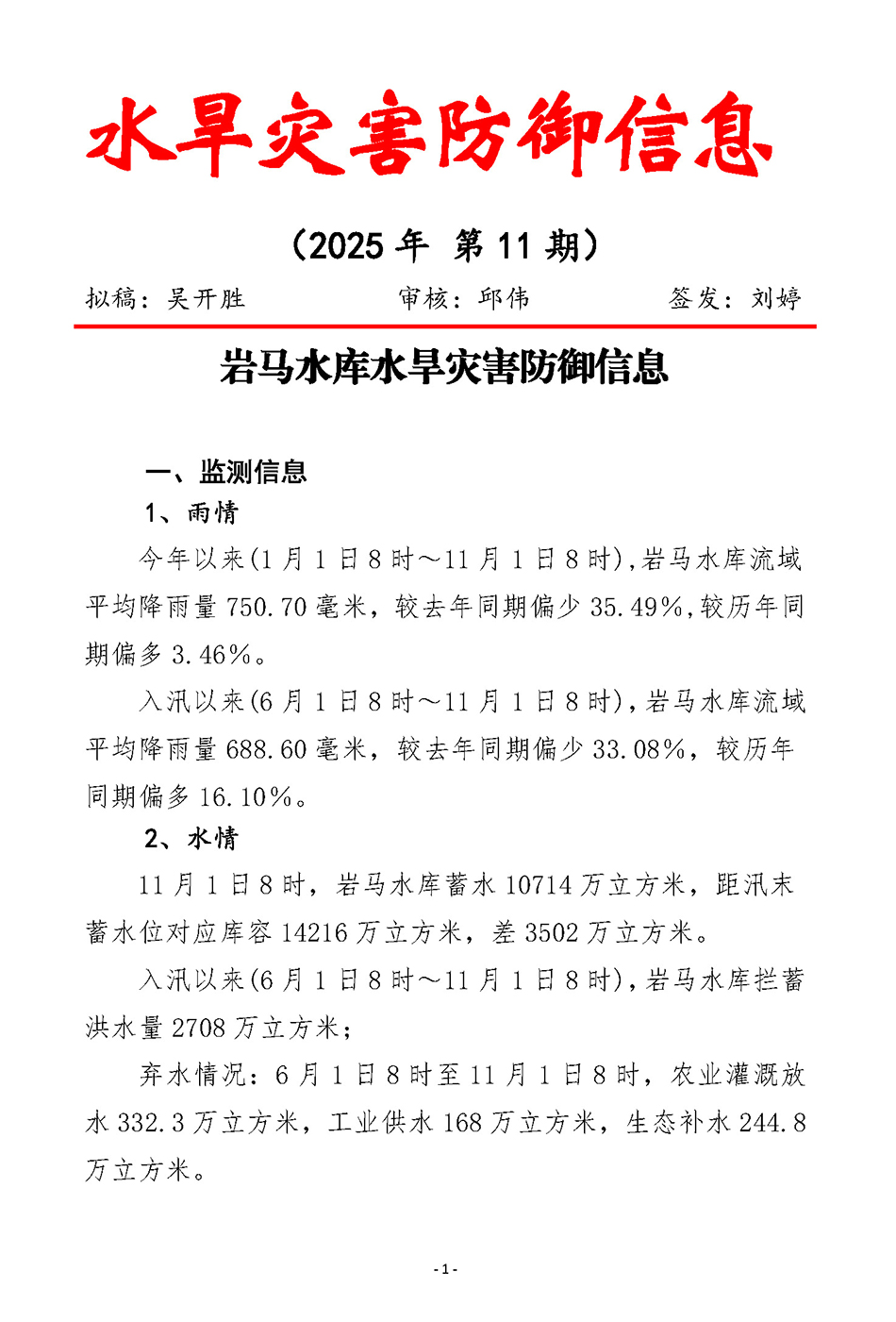 > 岩马水库水旱灾害防御信息(2025年第11期)
