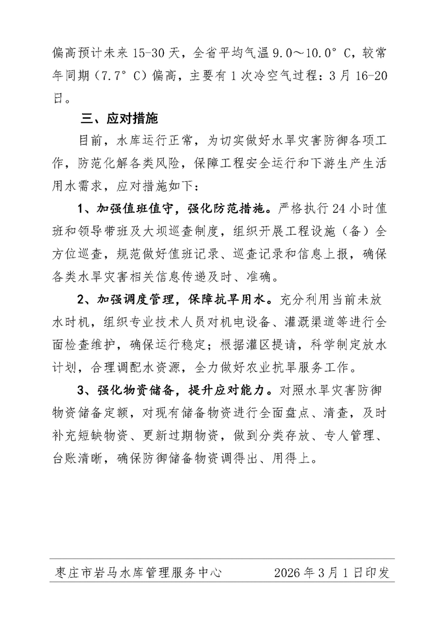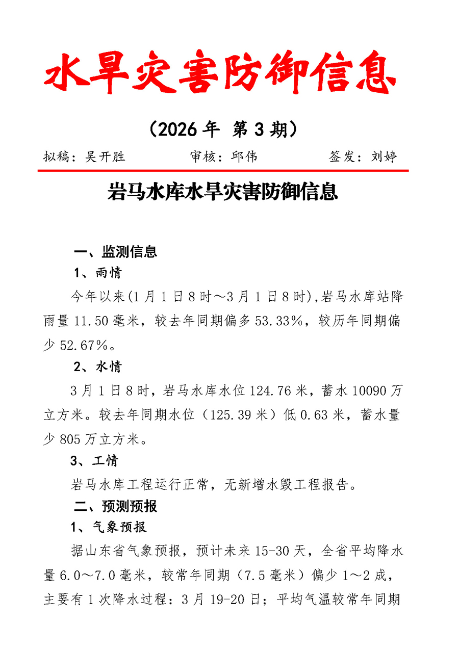 > 岩马水库水旱灾害防御信息(2026年第3期)